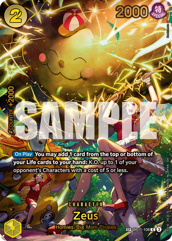 "[On Play] You may add 1 card from the top or bottom of your Life cards to your hand: K.O. up to 1 of your opponent's Characters with a cost of 5 or less."