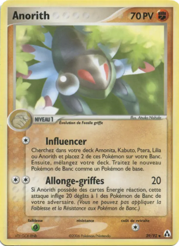 Cherchez dans votre deck Amonita, Kabuto, Ptera, Lilia ou Anorith et placez 2 de ces Pokémon sur votre Banc. Ensuite, mélangez votre deck. Traitez le nouveau Pokémon de Banc comme un Pokémon de base.