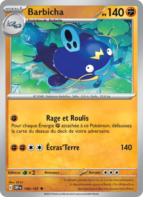 Pour chaque Énergie {F} attachée à ce Pokémon, défaussez la carte du dessus du deck de votre adversaire.