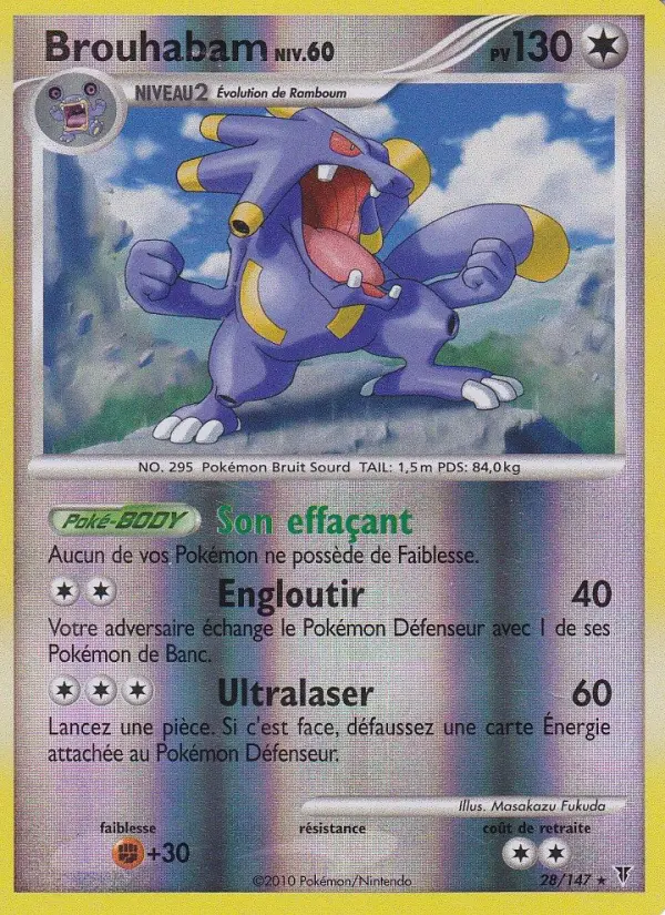 60Lancez une pièce. Si c'est face, défaussez une carte Énergie attachée au Pokémon Défenseur.