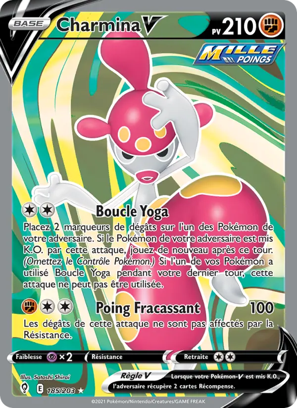 Placez 2 marqueurs de dégâts sur l'un des Pokémon de votre adversaire. Si le Pokémon de votre adversaire est mis K.O. par cette attaque, jouez de nouveau après ce tour. (Omettez le Contrôle Pokémon.) Si l'un de vos Pokémon a utilisé Boucle Yoga pendant votre dernier tour, cette attaque ne peut pas être utilisée.