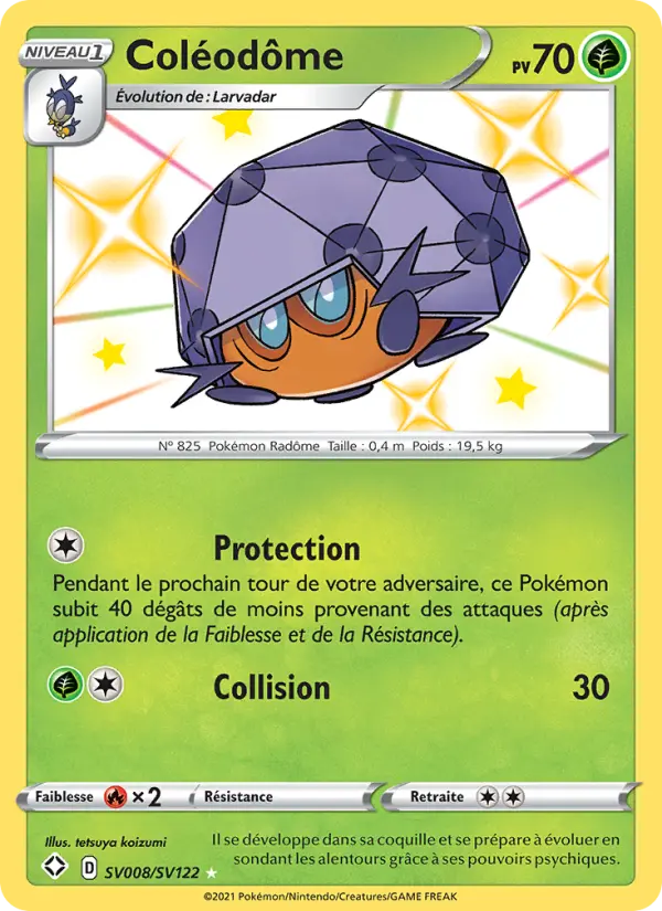 Pendant le prochain tour de votre adversaire, ce Pokémon subit 40 dégâts de moins provenant des attaques (après application de la Faiblesse et de la Résistance).