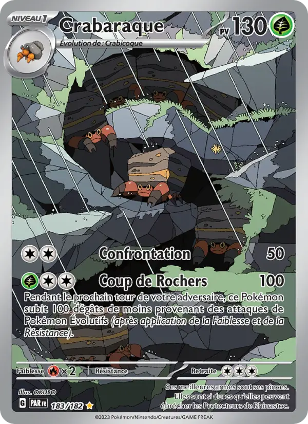 100Pendant le prochain tour de votre adversaire, ce Pokémon subit 100 dégâts de moins provenant des attaques de Pokémon Évolutifs (après application de la Faiblesse et de la Résistance).