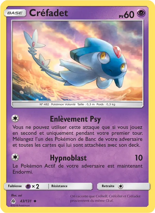 Vous ne pouvez utiliser cette attaque que si vous jouez en second et uniquement pendant votre premier tour. Mélangez l’un des Pokémon de Banc de votre adversaire et toutes les cartes qui lui sont attachées avec son deck.