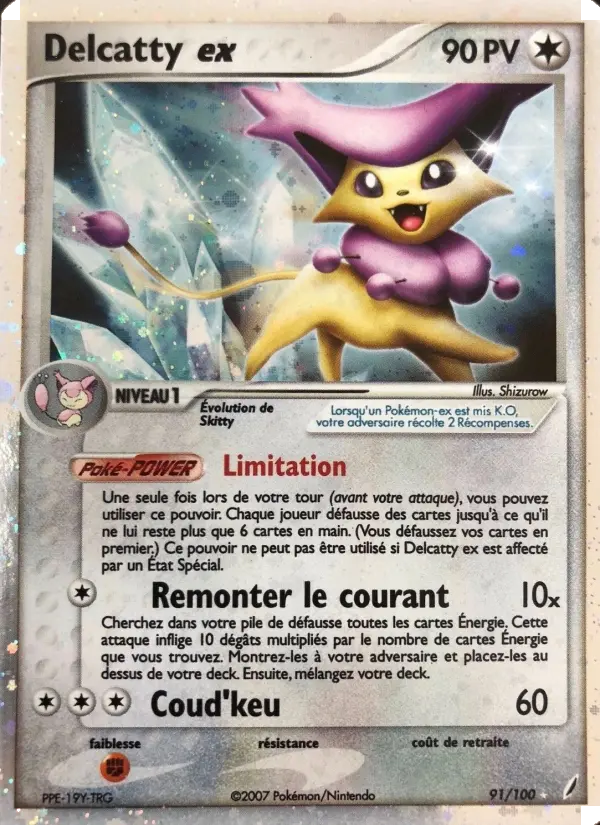 10xCherchez dans votre pile de défausse toutes les cartes Énergie. Cette attaque inflige 10 dégâts multipliés par le nombre de cartes Énergie que vous trouvez. Montrez-les à votre adversaire et placez-les au dessus de votre deck. Ensuite, mélangez votre deck.
