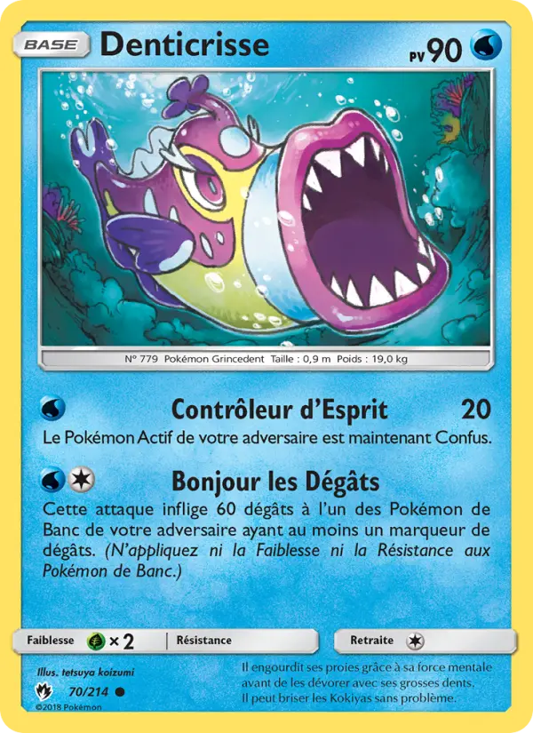 Cette attaque inflige 60 dégâts à l’un des Pokémon de Banc de votre adversaire ayant au moins un marqueur de dégâts. (N’appliquez ni la Faiblesse ni la Résistance aux Pokémon de Banc.)
