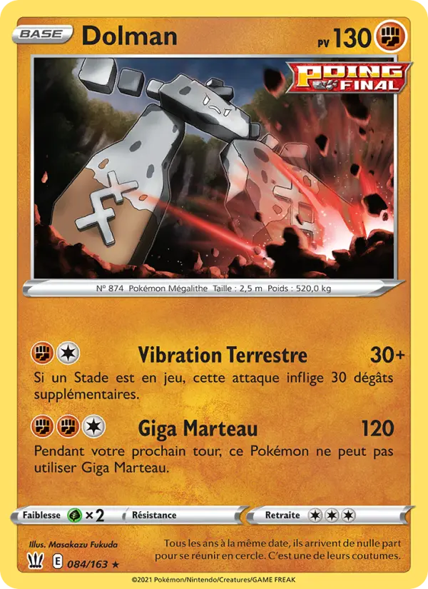 120Pendant votre prochain tour, ce Pokémon ne peut pas utiliser Giga Marteau.