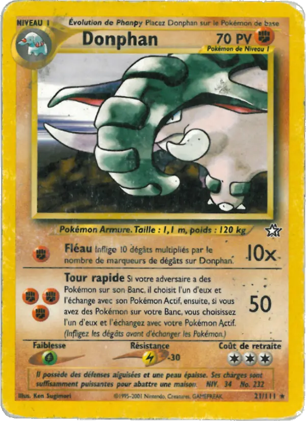 10xInflige 10 dégâts multipliés par le nombre de marqueurs de dégâts sur Donphan.
