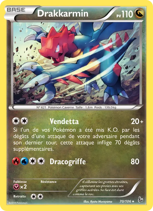 20+Si l'un de vos Pokémon a été mis K.O. par les dégâts d'une attaque de votre adversaire pendant son dernier tour, cette attaque inflige 70 dégâts supplémentaires.