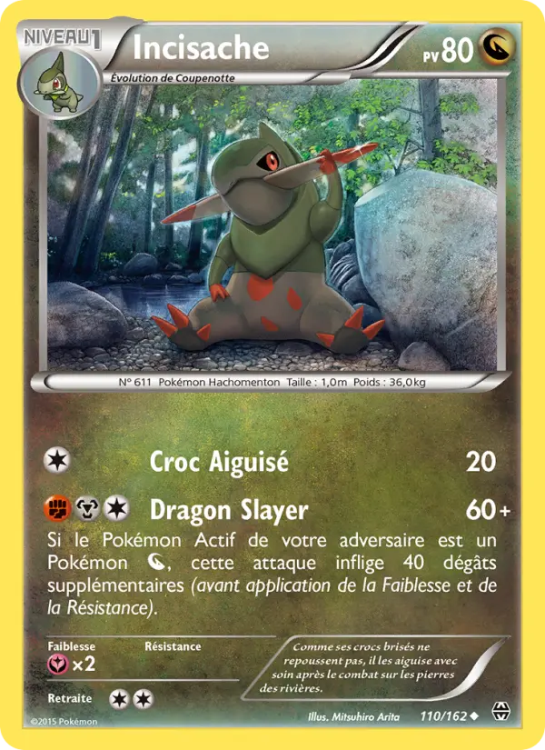 60+Si le Pokémon Actif de votre adversaire est un Pokémon Dragon, cette attaque inflige 40 dégâts supplémentaires (avant application de la Faiblesse et de la Résistance).
