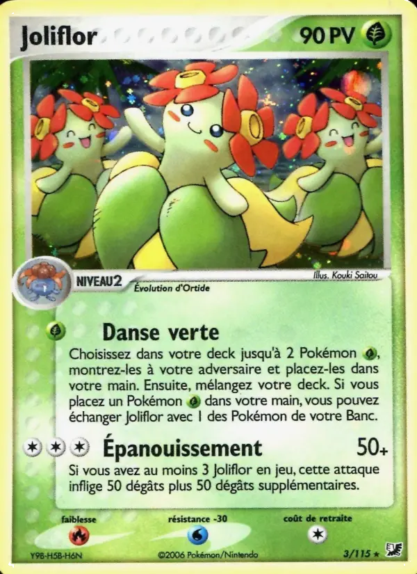 50+Si vous avez au moins 3 Joliflor en jeu, cette attaque inflige 50 dégâts plus 50 dégâts supplémentaires.