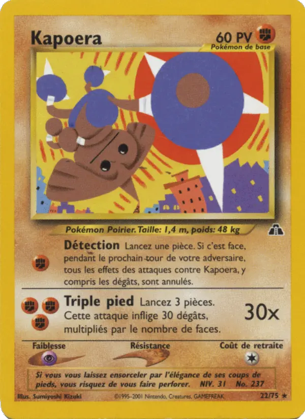 Lancez une pièce. Si c'est face, pendant le prochain tour de votre adversaire, tous les effets des attaques contre Kapoera, y compris les dégâts, sont annulés.