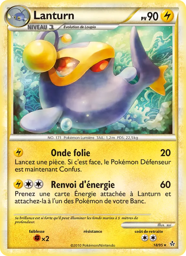 60Prenez une carte Énergie attachée à Lanturn et attachez-la à l’un des Pokémon de votre Banc.