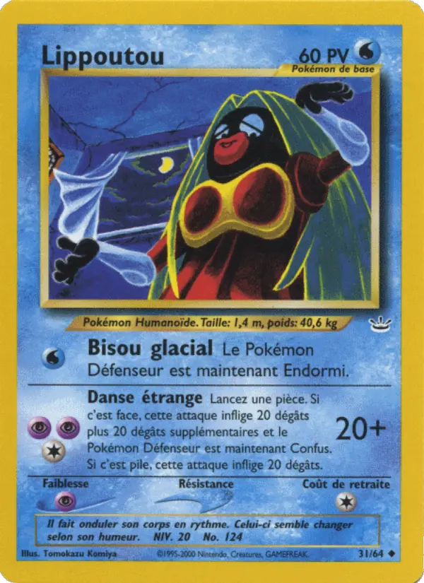 20+Lancez une pièce. Si c'est face, cette attaque inflige 20 dégâts plus 20 dégâts supplémentaires et le Pokémon Défenseur est maintenant Confus. Si c'est pile, cette attaque inflige 20 dégâts.