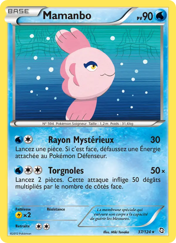 30Lancez une pièce. Si c'est face, défaussez une Énergie attachée au Pokémon Défenseur.