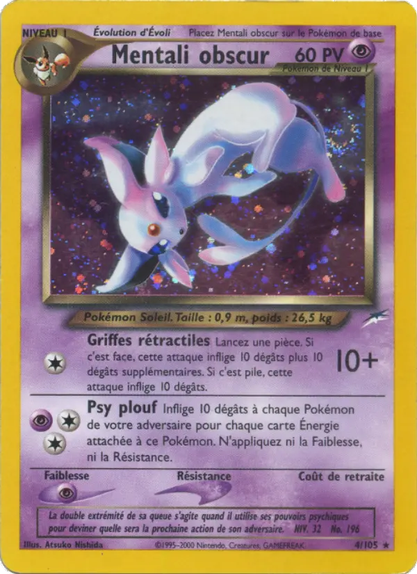 "La double extrémité de sa queue s'agite quand il utilise ses pouvoirs psychiques pour deviner quelle sera la prochaine action de son adversaire."