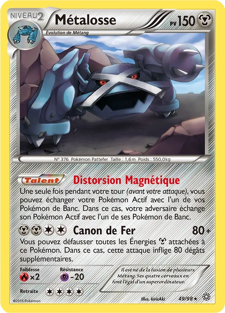 80+Vous pouvez défausser toutes les Énergies Metal attachées à ce Pokémon. Dans ce cas, cette attaque inflige 80 dégâts supplémentaires.