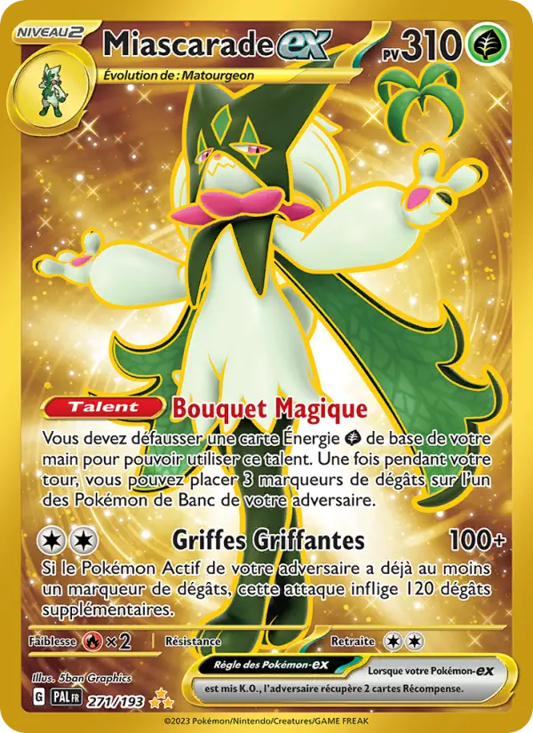 100+Si le Pokémon Actif de votre adversaire a déjà au moins un marqueur de dégâts, cette attaque inflige 120 dégâts supplémentaires.