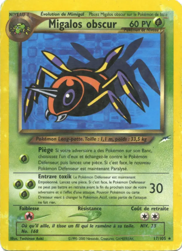 30Le Pokémon Défenseur est maintenant Empoisonné. Lancez une pièce. Si c'est face, le Pokémon Défenseur ne peut pas battre en retraite avant la fin du prochain tour de votre adversaire et si l'effet d'une attaque, Pouvoir Pokémon ou carte Dresseur vient à changer le Pokémon Actif, cette partie de l'attaque ne fait rien.