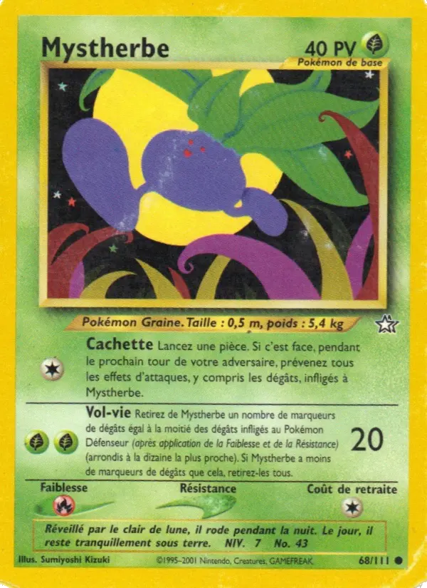 20Retirez de Mystherbe un nombre de marqueurs de dégâts égal à la moitié des dégâts infligés au Pokémon Défenseur (après application de la Faiblesse et de la Résistance) (arrondis à la dizaine la plus proche). Si Mystherbe a moins de marqueurs de dégâts que cela, retirez-les tous.