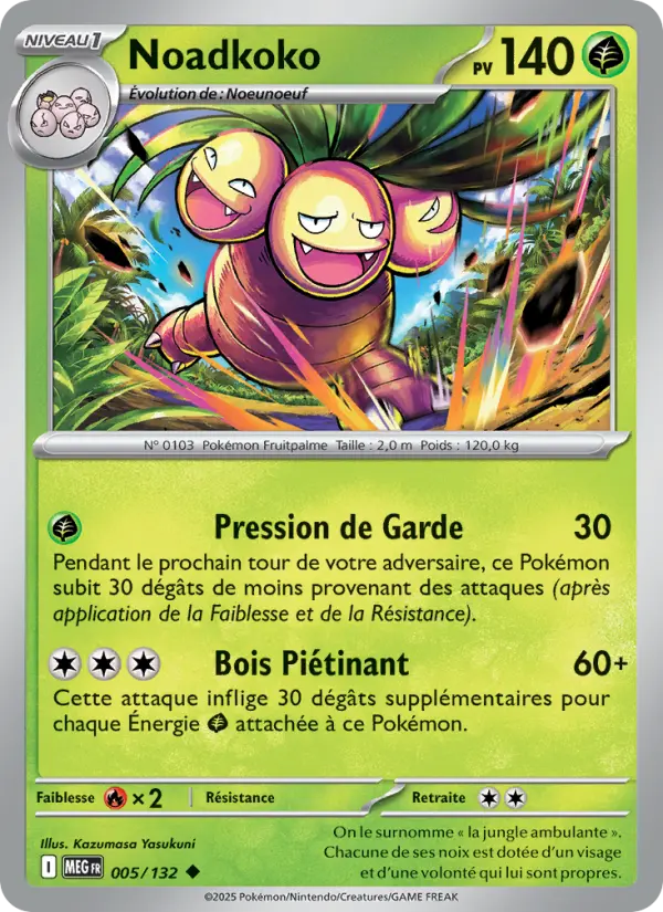 60+Cette attaque inflige 30 dégâts supplémentaires pour chaque Énergie {G} attachée à ce Pokémon.