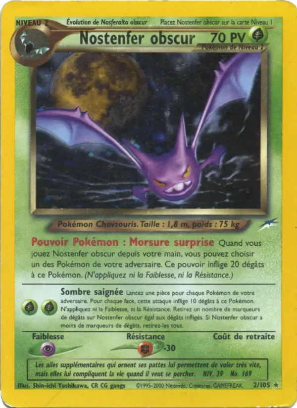 Lancez une pièce pour chaque Pokémon de votre adversaire. Pour chaque face, cette attaque inflige 10 dégâts à ce Pokémon. N'appliquez ni la Faiblesse, ni la Résistance. Retirez un nombre de marqueurs de dégâts sur Nostenfer obscur égal aux dégâts infligés. Si Nostenfer obscur a moins de marqueurs de dégâts, retirez-les tous.