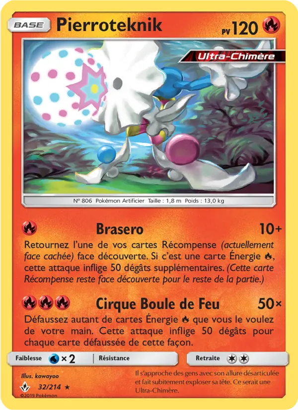 50×Défaussez autant de cartes Énergie Fire que vous le voulez de votre main. Cette attaque inflige 50 dégâts pour chaque carte défaussée de cette façon.