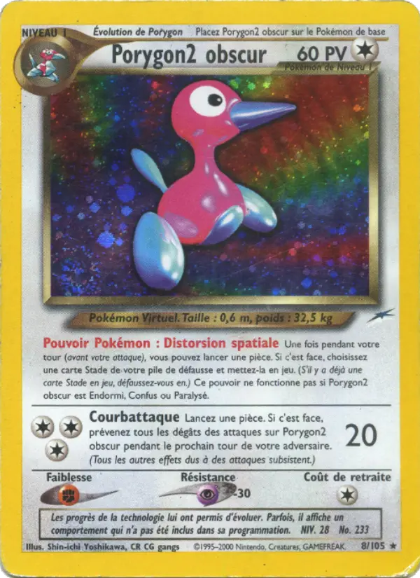 20Lancez une pièce. Si c'est face, prévenez tous les dégâts des attaques sur Porygon2 obscur pendant le prochain tour de votre adversaire. (Tous les autres effets dus à des attaques subsistent.)