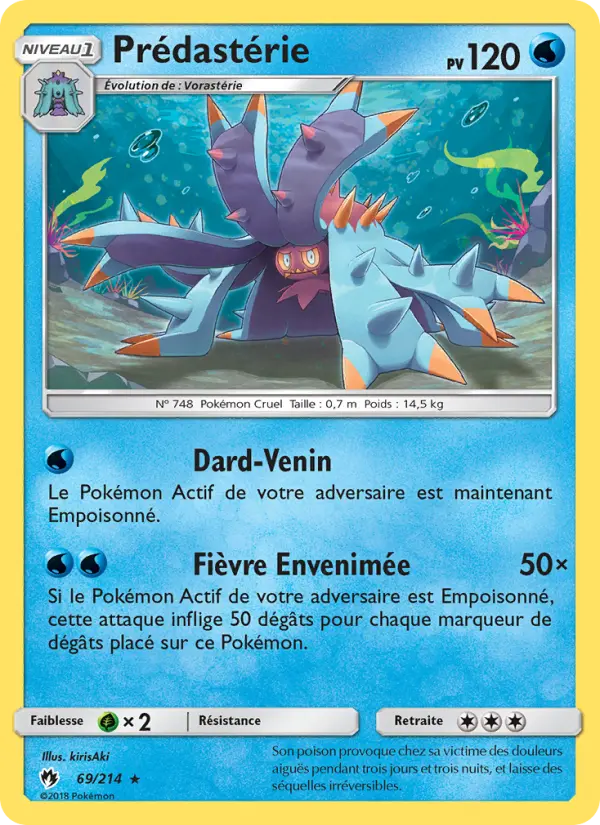 50×Si le Pokémon Actif de votre adversaire est Empoisonné, cette attaque inflige 50 dégâts pour chaque marqueur de dégâts placé sur ce Pokémon.