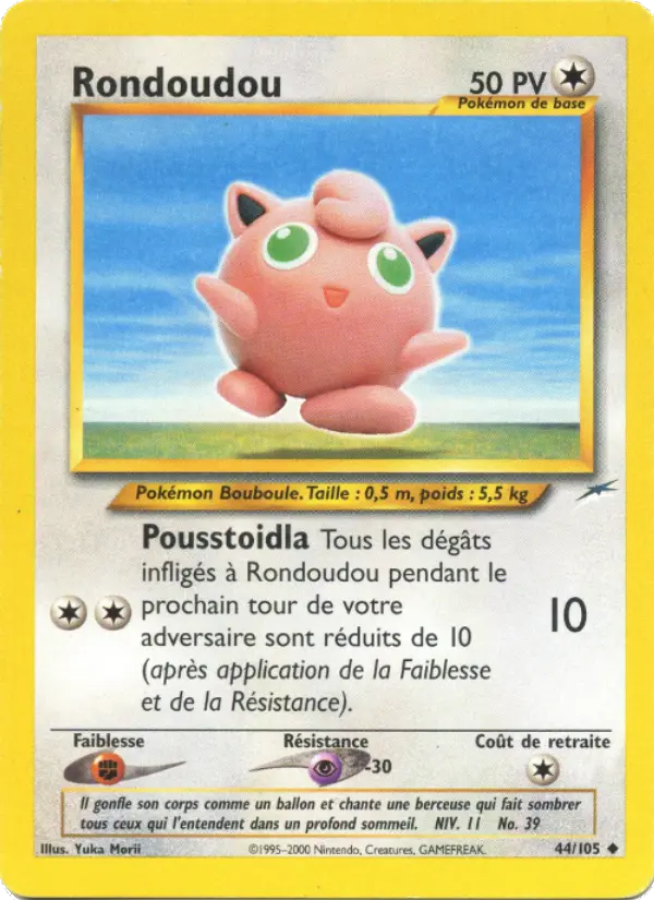 10Tous les dégâts infligés à Rondoudou pendant le prochain tour de votre adversaire sont réduits de 10 (après application de la Faiblesse et de la Résistance).