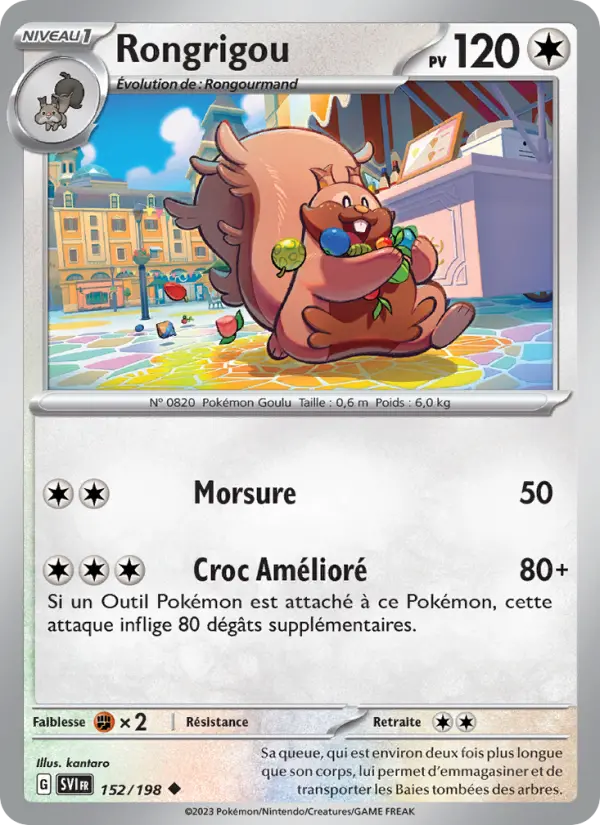 80+Si un Outil Pokémon est attaché à ce Pokémon, cette attaque inflige 80 dégâts supplémentaires.