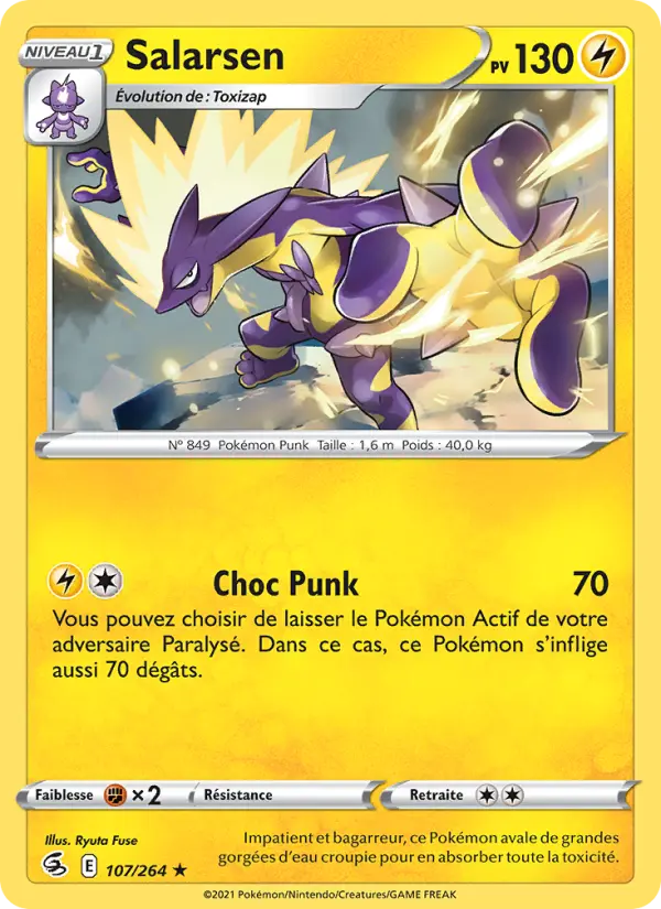 70Vous pouvez choisir de laisser le Pokémon Actif de votre adversaire Paralysé. Dans ce cas, ce Pokémon s'inflige aussi 70 dégâts.