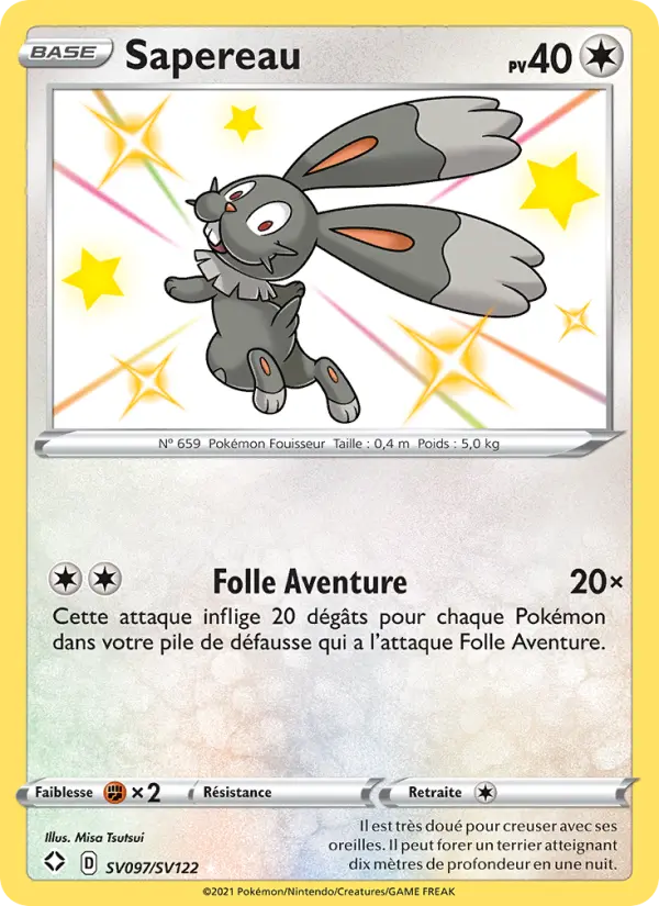 20×Cette attaque inflige 20 dégâts pour chaque Pokémon dans votre pile de défausse qui a l'attaque Folle Aventure.