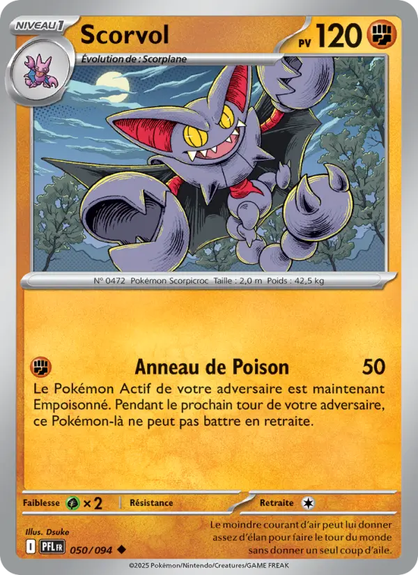 50Le Pokémon Actif de votre adversaire est maintenant Empoisonné. Pendant le prochain tour de votre adversaire, ce Pokémon-là ne peut pas battre en retraite.