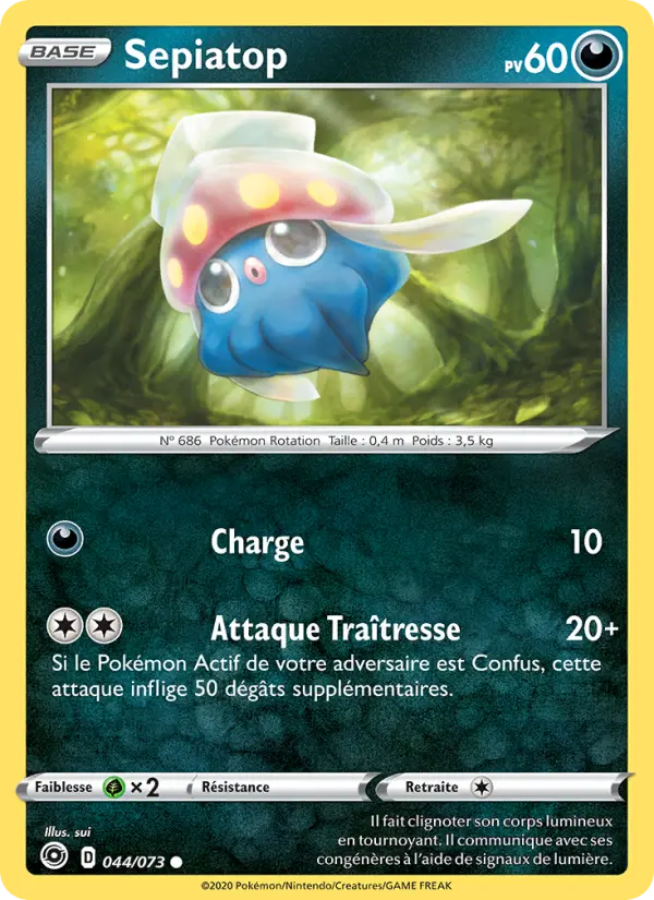 20+Si le Pokémon Actif de votre adversaire est Confus, cette attaque inflige 50 dégâts supplémentaires.