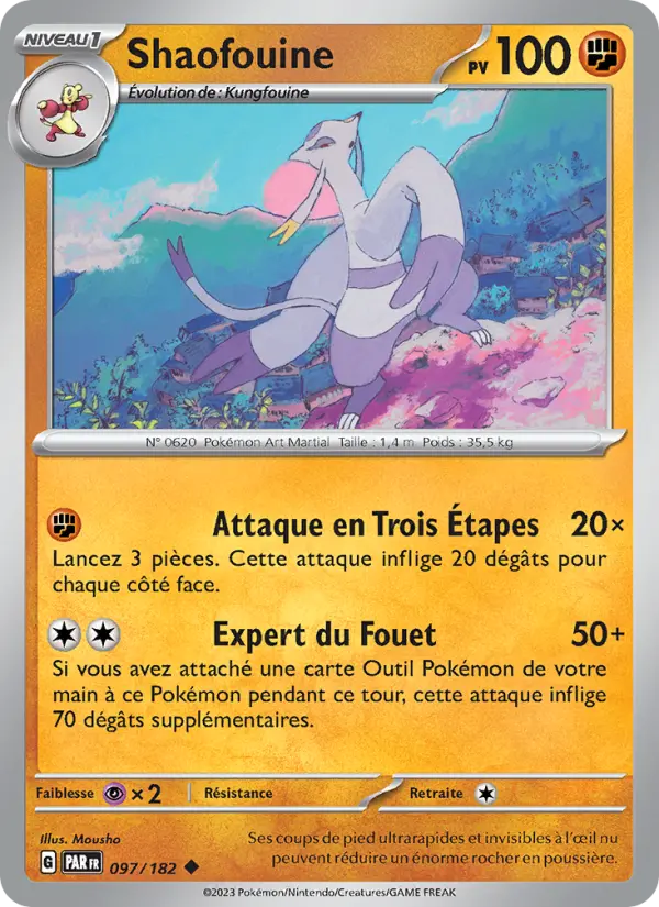 50+Si vous avez attaché une carte Outil Pokémon de votre main à ce Pokémon pendant ce tour, cette attaque inflige 70 dégâts supplémentaires.
