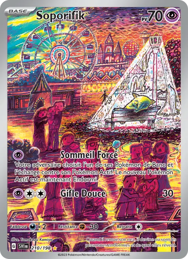 Votre adversaire choisit l'un de ses Pokémon de Banc et l'échange contre son Pokémon Actif. Le nouveau Pokémon Actif est maintenant Endormi.