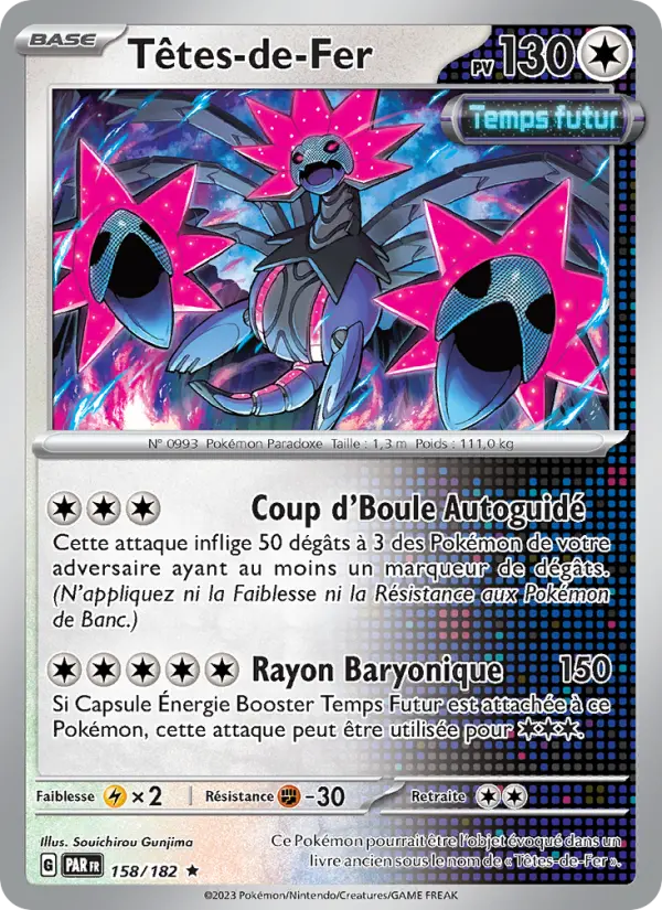 150Si Capsule Énergie Booster Temps Futur est attachée à ce Pokémon, cette attaque peut être utilisée pour {C}{C}{C}.