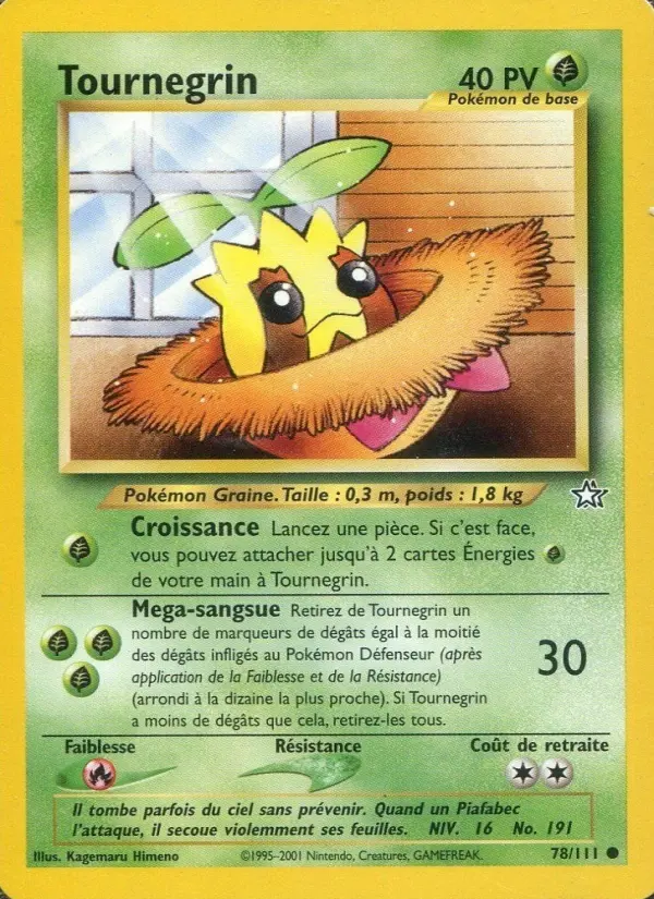 30Retirez de Tournegrin un nombre de marqueurs de dégâts égal à la moitié des dégâts infligés au Pokémon Défenseur (après application de la Faiblesse et de la Résistance) (arrondi à la dizaine la plus proche). Si Tournegrin a moins de dégâts que cela, retirez-les tous.