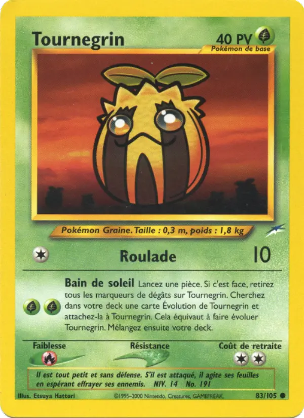 Lancez une pièce. Si c'est face, retirez tous les marqueurs de dégâts sur Tournegrin. Cherchez dans votre deck une carte Évolution de Tournegrin et attachez-la à Tournegrin. Cela équivaut à faire évoluer Tournegin. Mélangez ensuite votre deck.