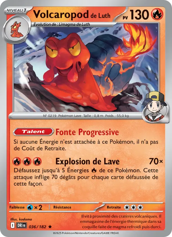 70×Défaussez jusqu'à 5 Énergies {R} de ce Pokémon. Cette attaque inflige 70 dégâts pour chaque carte défaussée de cette façon.