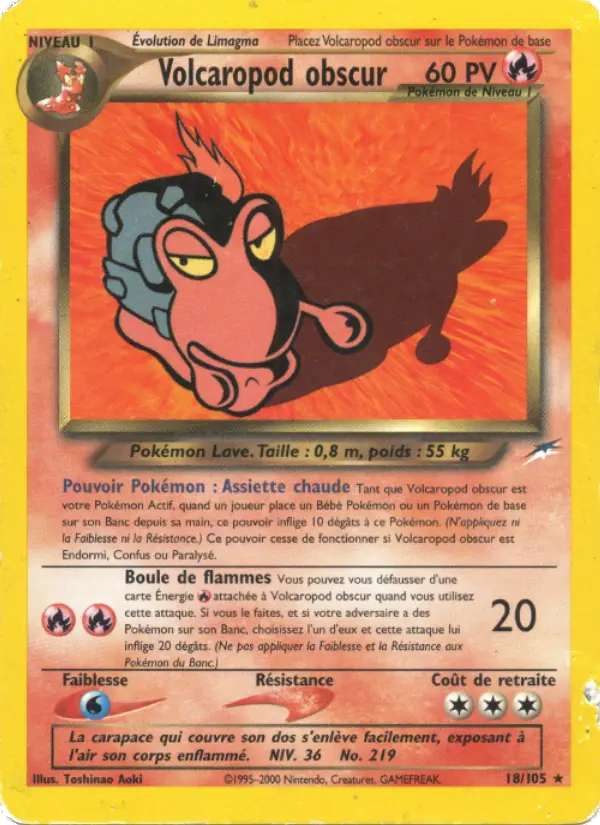 20Vous pouvez vous défausser d'une carte Énergie attachée à Volcaropod obscur quand vous utilisez cette attaque. Si vous le faites, et si votre adversaire a des Pokémon sur son Banc, choisissez l'un d'eux et cette attaque lui inflige 20 dégâts (Ne pas appliquer la Faiblesse et la Résistance aux Pokémon du Banc.)