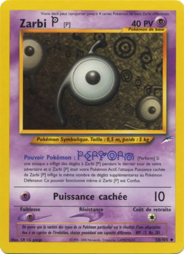 "On pense que la variété des types de ce Pokémon particulier est le résultat d'une adaptation due à un caprice de l'évolution, chacun possédant une capacité différente."