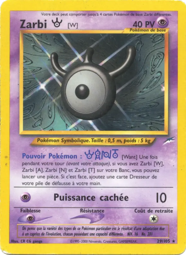 "On pense que la variété des types de ce Pokémon particulier est le résultat d'une adaptation due à un caprice de l'évolution, chacun possédant une capacité différente."